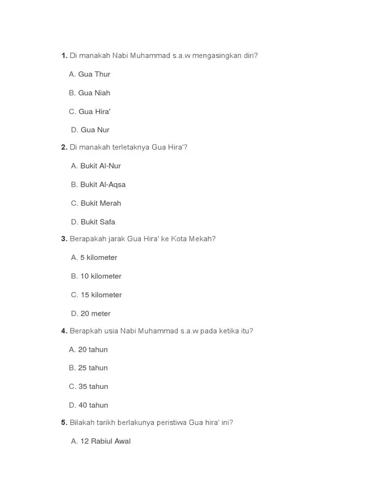 Latihan Soalan Sirah Tahun 4 - Contoh Soalan Sirah Darjah 1 Ppdbasu